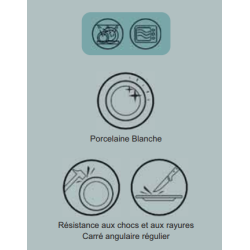 Vaisselle résistante aux chocs et aux rayures, carré angulaire régulier pour une solidité et un rendu impeccable.