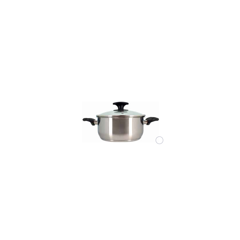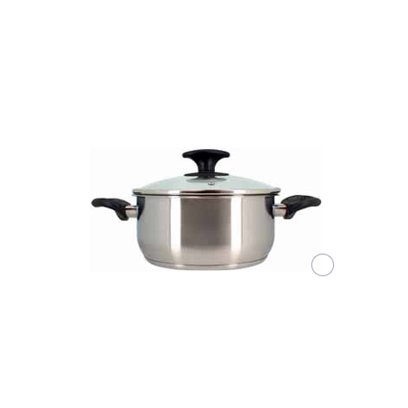 Casserole inox à fond triple couche inox, avec couvercle en verre.